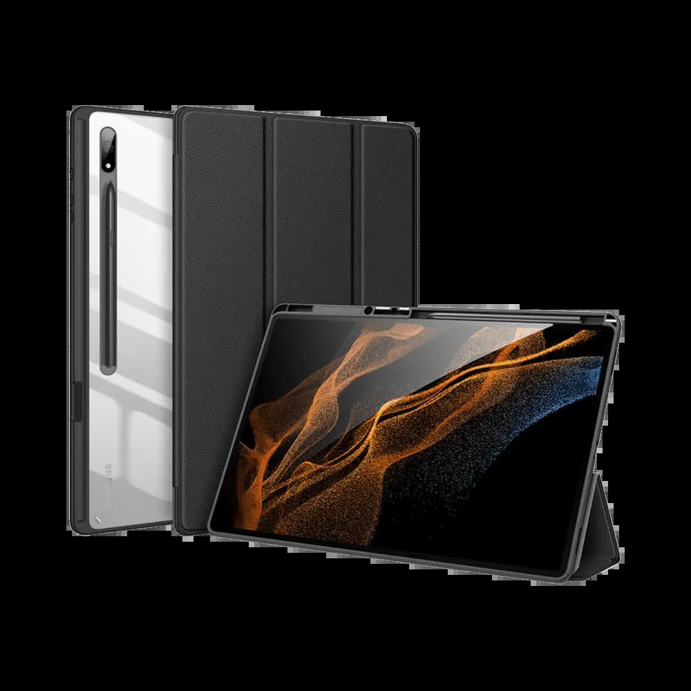 Housse folio Samsung Galaxy Tab S8 Ultra avec dos transparent & porte-stylet - Dux Ducis Toby Noir