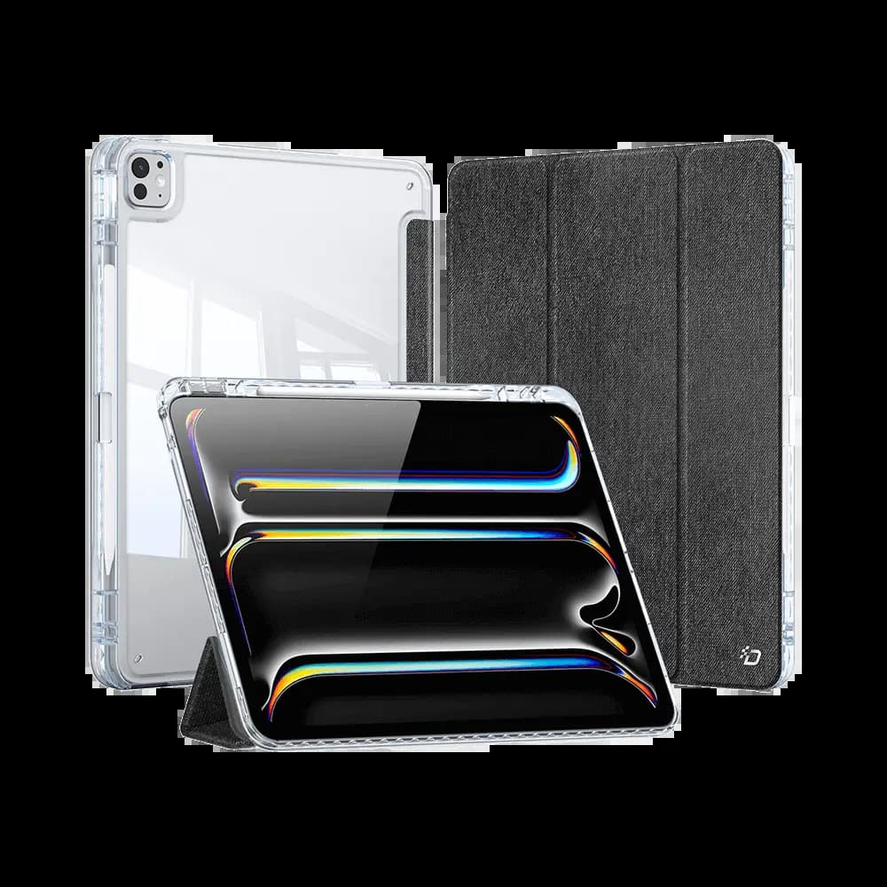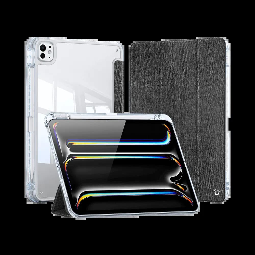 Housse folio iPad Pro 11" M4 (2024) avec dos transparent & porte-stylet - Dux Ducis Toby noir